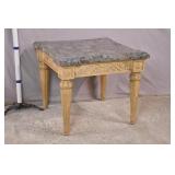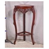 Carved mahogany corner plant stand with marble top; 662-1688 - stretcher base - 20x14.5x35.5