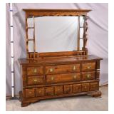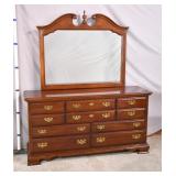 Dixie cherry 10 drawer dresser with mirror; 662-1674 - (finish as-is) - 66x19x34.5 dresser; 51x42 mirror