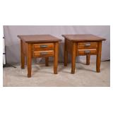 Pair of oak 2 drawer end tables; 662-1681 - 26x26x25.5