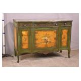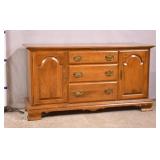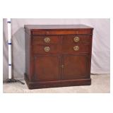 Drexel mahogany server with pull out serving tray; 662-1660 - 3 drawers and 2 doors - (finish as-is; chip in veneer on back edge of baseboard) - 36x18x33.5