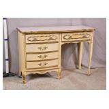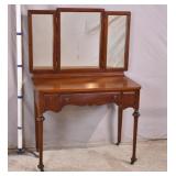 Decorated kidney shaped vanity with lift top beveled mirror; 951-201 - cabriole legs - 42x17x31.5