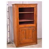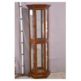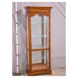 Narrow curio cabinet; 951-168 - lighted interior with mirror back and glass shelves - (finish as-is) - 25x11x72