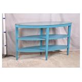Teal/blue oval 3 tier console table with protective glass top; 662-1677 - 52x18.5x32