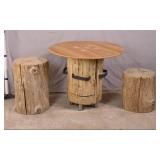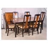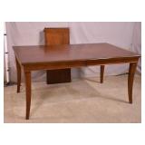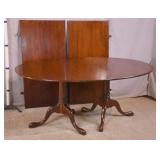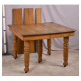 Oak dining table with 3 leaves; 705-106 - center support leg - (finish as-is) - 42x42x30; two 8" and one 5" leaf