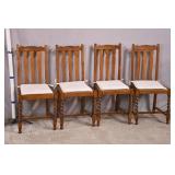 Set of 4 oak pub chairs with barley twist legs; 705-108 - stretcher base - 18x18.5x38.5