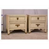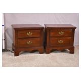 Pair of Carolina Furniture Works cherry 2 drawer bedside chests; 951-179 - fluted columns - 25x16x23.5