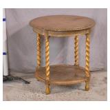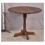 Early distressed round table with turned pedestal base; 951-196 - (cracked support under top) - 36x36x30.5
