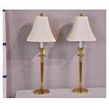 Pair of brass stick lamps with shades; 705-109 - 10.5x10.5x29.5
