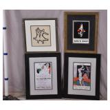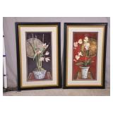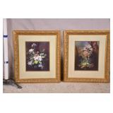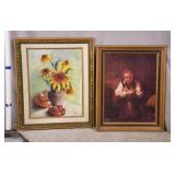 Framed still life painting on canvas and print on board; 520-119,116 - 25.5x31 and 23x29