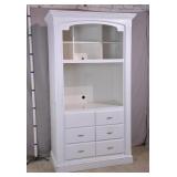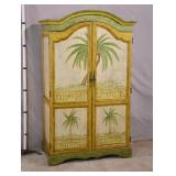 Palm tree decorated arch top entertainment armoire; 951-167 - wrap around door hinges - (light scuffs in paint on front) - 46.5x26x77