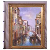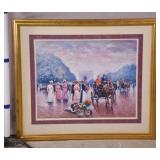 Large gold framed Paris scene print; 14-109 - 37.5x32.5