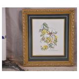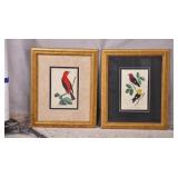 Pair of bird prints with ornate gold frames; 951-208 - (spots in gold finish) - 21.5x25