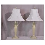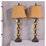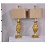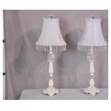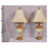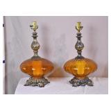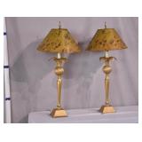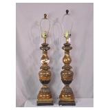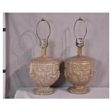 Pair of ornate lamps; 737-2398 - (finish as-is; chips; different size harps) - 6x6x35