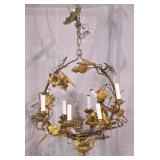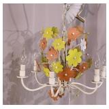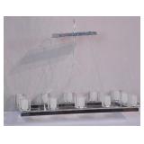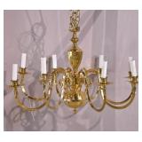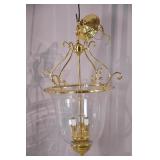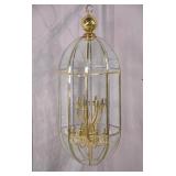 Large 12 light beveled glass chandelier; 192-970 - individual panes - access door on side - (missing 1 glass pane) - 17x17x40