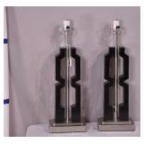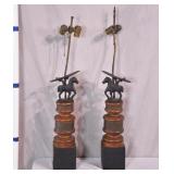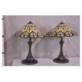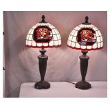 Pair of Gamecock lamps; 951-157 - metal bases with stained glass shades - (1 shade has cracked/broken panes) - 12x12x24.5