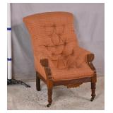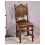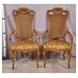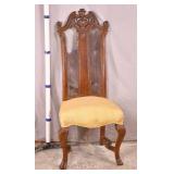 Carved high back side chair; 68-206 - (cane and fabric as-is; missing stretcher) - 22x24x49.5 |
