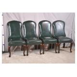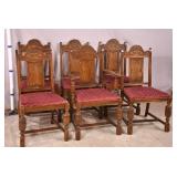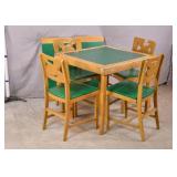 Norquist "Coronet" 5 piece folding card table set; 14-lot - folding table with 2 leaves 32x32x29; 16" leaves - 4 chairs with flower carving in back 16.5x18.5x32.5 - (finish as-is)