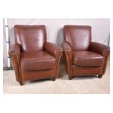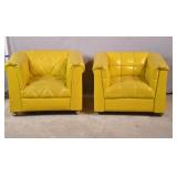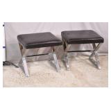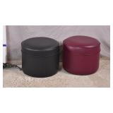 Pair of round vinyl ottomans; 951-210 - 1 black and 1 garnet - 16.5x16.5x13.5