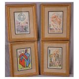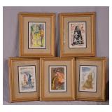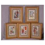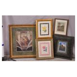 Group of 5 framed prints; 274-005,029,039,137 - 2 floral, landscape calendar cover, renaissance, creek scene - 20x23 largest size