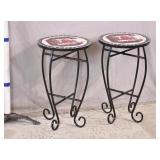 Pair of round tile top Gamecock side table with metal bases; 951-245 - 14x14x23.5