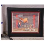 Framed print "Two Tough Ole Birds" by Cal Warlick; 951-236 - Lou Holtz with gamecock - artist signed and numbered 60/2000 - 21.5x29