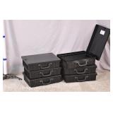Group of 6 black plastic transfer/storage cases; 14-lot - lift top - ID label slot on side - 17x13x4.5
