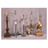 Group of 5 misc ornate lamps; 68-730,759,816 - green metal, brass, figurine, etc.