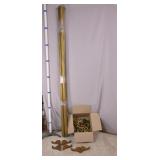 Set of 3 gold reeded wood curtain rods with rings and mounting brackets; 951-239 - crackle finish - 99" long rods