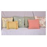 Group of 6 misc throw pillows; 951-lot - 17x17 largest size