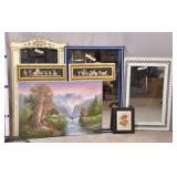 Group of 3 mirrors, painting on canvas and 3 small prints; - 55-4902,4901,4840,4841,4839