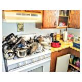 Kitchen Farberware Newer Pots and Pans, 2 Sets of New In Box Siestaware, Danby Fridge, Galanz Small Refrigerator, Kitchenwares, Utensils, Microwave, Cups and Glasses and SO MUCH MORE!