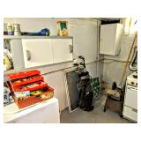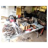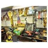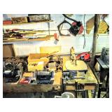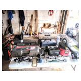 Tools TONS AND TONS OF TOOLS INCLUDING Hand Tools, Power Tools, Craftsman Riding Mower, Craftsman Miter Saw, Campbell Air Compressor, Toro Riding Mower, Gas Weed Whacker, Craftsman Radial Arm Saw, Craftsman Band Saw, Oxygen Acetylene Torch Set on Dolly, Ryobi Drill Press, Palm Sanders, Bench Grinders, Belt Sanders, Drills, Dewalt Cordless Drill, Craftsman Cordless Drill, Dewalt Circular Saw with Metal Case, Craftsman Band Saw, Krause and Becker Airless Paint Sprayer in Box, Craftsman Floor Jack, Shop Vac, Battery Chargers, Wrenches, Sockets, Socket Wrenches, Chemicals, Hardware, Tires, Jack Stands, Ladders, Propane Tanks, Large and Medium Woodworking Clamps, Small to Medium C Clamps, Extension Cords, Tool Sets, Hedge Trimmers, Tap and Die, Bench Polisher, Gear Pullers, Router, Router Table, Router Bits, Grinders and SO MUCH MORE 3 AREAS FULL OF TOOLS!!!!!