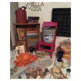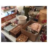 A partial list of items for sale will include a very nice king bedroom suite, pair of chair and a halfs with ottoman, pair of matching curved glass curios, oak end tables, coffee table with drawer storage and pull out magazine rack, jewelry armoire, small storage towers, newer dehumidifier, wall mount quilt rack, matching bookcases, desk, commode, rolling file drawers, wooden cabinets with hanging baskets, table and floor lamps, five televisions of various sizes, area rugs, bed and bath linens, new and old frames, oak hall tree cabinet, nice tv stand with glass doors, folding poker/game table, dining table with 4 chairs on castors, Craftsman style table with six chairs, Schwinn Bio Dyne exercise bike, Whirlpool stainless steel 25 cu ft double door refrigerator with drawer and bottom freezer-6 years old, Frigidaire black double door refrigerator-ice and water capable-2 years old, Kenmore small chest freezer with pull out bottom drawer, washer and dryer, four drawer file cabinet, white garage storage cabinets, storage cubby towers, shelving, cheval mirror, vintage wicker chairs and loveseat, vintage drop leaf kitchen table, nice deck chairs, Backyard gas grill, yard ornaments including water feature-artificial rocks-planters, box after box of cookbooks, albums and 45s, vintage and new kitchenware, Pyrex, Corningware, Pfaltzgraff, free standing wine rack and accessories, RCA shelf stereo, Magnavox integrated stereo amplifier, Sony CD changer, turntable, Keurig, malt maker, Hummels with boxes, clown collection, Arm & Hammer vintage wooden box, Childs chairs, Jiffy ice cream maker, old books, oil can, Haeger girl with bowl planter, vintage magazines and other ephemera, printers type drawers, all kinds of collectibles and goodies (see pictures), salt and peppers, many tiny shadow box items, romance novels, large selection of vintage games, jewelry, wool area rug, oil lamps, 3 gallon Red Wing crock, Wii game, Harry Potter troll figurine with box, fantastic selection of Christmas-Santas and anything you could want to decorate with, Stereoscope with WW1 boxed cards, dehydrator, tools, so much more…..And don’t forget to shop Kay’s Kloset for very nice women clothing -sizes from 8-14……. |