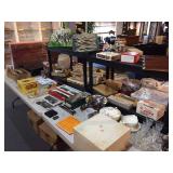 Estate Jewelry includes Costume, Coins to include Clad Half Dollars, pre '64 Quarters, over 50,000 Pennies, etc., English Trinketware, Art including Prints and Oil Paintings, Silverplate, Watches, Purses, large set Pope-Gosser China, Trains, much Antique China, Perfume Bottles, Hobnail, Antique Creamer Collection, 20 Hummels, Wild Turkey Bottles, Primitives, Orientalia, Large Mirrors & more!