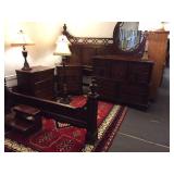 Outstanding Model Home Furniture to include fabulous Inlaid Mahogany Chippendale style Bedroom Suite with King Size Bed with oversized Night Stands, Tall Chest and Two Dressers, Superb French style Banquet Table, 8 Chairs and Gorgeous China Closet, Coffee Table Sets, Leather Recliners & more, also Mid-Century Sideboard, Dressers, etc., almost 100 pieces of Quality Oil Paintings, Art and Prints from a New York Museum Curator, Clad & Silver Coins, Gold Estate Jewelry and great Quality Costume Jewelry, Sterling, 40 piece Collection Antique African Masks and Items, English Trinketware, Rose Medallion, Antique Oriental Porcelains, etc., Perfume Bottles, Tin Molds, Herend, Majolica, Tiffany, old Paperweights, New York related Items, Military Buttons, Dauggerotypes, Stamps, Handsome Persian Estate Rugs, Primitives, & more!