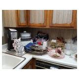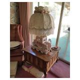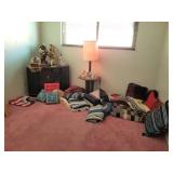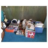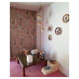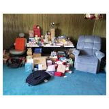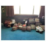 · Furniture – living room, family room, and bedrooms · Vintage glass flower table lamp · Vintage cabinets · Home décor · Artwork/prints · Italian porcelain Capodimonte table lamp · Vintage 5-cent slot machine (from MGM) · Electric scooter · Hobby Lock 794 serger · Collector plates · Books · Albums/CDs/cassettes · Avon collection · Clothing – men’s and women’s, shoes and purse · Costume jewelry · Vintage wrought iron patio table + 6 chairs · Vintage hanging swag lanterns and lamps · Children’s toys · Linens – blankets, pillows, towels, and sheet sets · And more