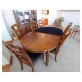 Dark oak dining table and chairs