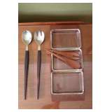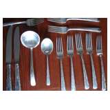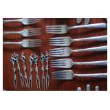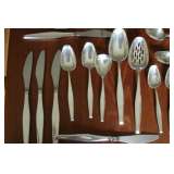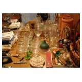 In the Kitchen: Pots and Pans (some vintage) Refrigerator Gorham Sterling silver set (midcentury modern) Towle Sterling Silver set Dishes (various kinds) Mason jars Wine glasses Decanters Bake ware All kinds of vintage & modern kitchen ware