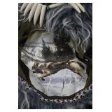 315. White Halloween Feather Tree w/ Bottle Cap Ornaments and Garland