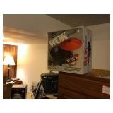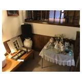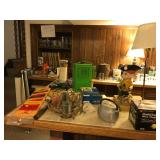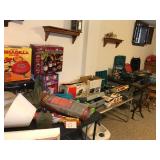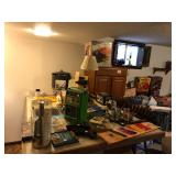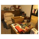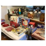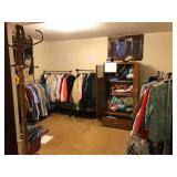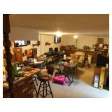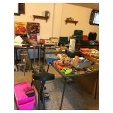 Lots of NEW UNOPENED goods, Shelving, Jewelry cabinets, Vases, beanie babies, lamps, mirrors, games, filing cabinet, glass office desk and chair, cub scout uniforms, vacuum and other cleaning equip, clocks, bar stools, barware, projector screen, Wok, new cabinets in box, vintage exercise equipment, toy guns, exercise bike, freezer & refrigerator, workbench, glass figurines, display shelving, pool toys, hunting, fishing and camping gear, bike, exercise trampoline, dressers, luggage and so much more!