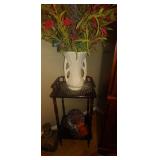 Lots of Household, Xmas, Furniture, Pier One Table, electric fireplace, antique dresser, hutch, antique ice box, Antique Stiffel lamp, Platzgraff complete dish set, books, baking items area rugs, and much more |