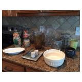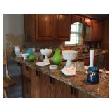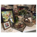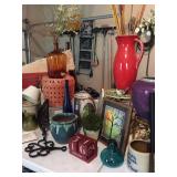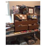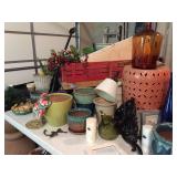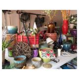 Flexsteel sofa and chair, LaZBoy designer swivel rocker, Broyhill five piece bedroom suite, Solid oak double pedestal dining table with six bow back chairs, Tall bar chairs, Oak Craftsman style tv cabinet, Vintage secretary bookcase, Variety of table lamps, Wood and metal coffee table, Marble style round top table, Samsung front loading washer and dryer, Schwinn 240 BioDyne recumbent bike, Graco hi chairs, Fisher Price toys, Ziegler Collection matching area rugs in three sizes, Other area rugs, Pottery Barn wool rugs, Coldwater Creek-Anne Klein-Brighton-and other designer ladies jewelry, Tom Willet men’s turquoise ring, Unique wine cabinet, Wooden toy chest, Updated tables, Canoe display, Plant stands, Progressive Furniture high back queen bed, Trenton pillow top queen mattress set by Sutherland, Two oak desks, Ottoman, Pottery Barn and other decorator pillows, Tommy Hilfiger new curtain sets, McCoy-Hull-and Haeger pottery, Robert Held Canadian art glass, Variety of collectible glassware-video games-Jim Shore snowmen, Cuisinart, Oster, Gorham, Keurig, Fenton, Toshiba and Hitachi DVD players, Flow Blue plate, Quilting and Gardening books, Radio Flyer wagon, Roll around two level work cart, Craftsman power washer, ladders, hand tools, Fishing vests, Cat bowls and liter boxes, Dog bed, Bissell Big Green carpet cleaner, Kenmore canister vac, Three matching bookcases, Wicker coffee table with basket storage, Lots of baskets, Lord of the rings goblets, Calphalon cookware set, No sets of china and no Pyrex! LOL, Tommy Bahama bedding, Lots of socks, Born sandals, Awesome Fossil bag, Sony TV, Metal wall sculptures, Beautiful signed and framed artwork, Garage storage cabinet, Canon AE-1 film camera and lenses, Nice outdoor furniture and tables, Large ceramic outdoor pots with plants, Blue three tier water fountain, Bird feeders, and so much more…….