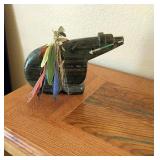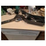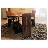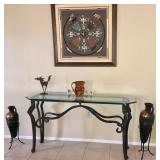 LIVING ROOM/DINING AREA: Navy Leather Dual Recliner Love Seat; Navy Leather Dual Recliner Sofa; Extended Parson’s Table; Hand Crafted Wood Accent Table with Turquoise Inlay; Large “Trees Reflecting in Lake” Giclee on Canvas; Carved Stone African Stylized Bust, Signed; Blown Turquoise Glass Trumpet Vase, Signed; Southwest Style Area Rug; Oak Accent Table; Iron Candlestick; Chrome Bull; “Thy Heart Be Mine” Acrylic on Canvas, Signed; Unique Walnut & Zebra Wood Tri-Sided Bistro Set with 6 Matching Stools; Native American Woman with Pots Print by Mullan; Glass & Iron Entry Table; Large Healing Sand Painting, Signed; Snakeskin Pattern Turquoise & Black Glass Vase signed Philabaum FAMILY ROOM/KITCHEN: 2 Ashley Contemporary Plush Love Seats, one Chocolate and the other Tan; Modern Solid Black Walnut, Steel & Beveled Glass Custom Accent Table; Large Oil on Canvas CHAPEL DOOR signed Peter Van Dusen; MCM Daum Signed Vase; Dynex 57” TV; Bose Radio; Sony DVD Player; GPX Home Sound System; CDs; Cherry Finish Contemporary Dining Set with Leaf & 4 Chairs; Table Linen & Mats; Accent Pieces; 73pc Vintage Pfalzgraff Stoneware Dining Set with Serving & Accent Pieces (complete serving for 6 Plus); Stemware; Mr. Coffee; Kitchen Gadgets; Henckel Knives; Solingen Knives; Contemporary Luncheon Set for 4; Crock Pot; Toaster; Barware; Limited Edition PENNSYLVANIA HOMECOMING Poster double signed by Lyster; Pair of Oak Amish Stools OFFICE: Oak Computer Desk; Rolling Office Chair; 7 Shelf Oak Wall Rack; Routers; Games; Lytec Speakers; Pneumatic Stapler; Miscellaneous Collectibles; Books; Office Supplies; 2 Drawer File Cabinet MASTER BEDROOM: King Tempurpedic Mattress Set; Brass Headboard; Eathen Allen Club Chair; Walnut Table Lamp; SAILING PATTERNS Print with Dual Signature by Walton Butts; Navajo Rugs; Bissell Steam Cleaner; Bissel Vacuum; Kenmore Vacuum; Iron & Ironing Board GUEST BEDROOM: Pair of Stearns & Foster XL Long Twin Mattress Sets; Bed Linen; Country French Headboard & Footboard; Night Table; Modern Chrome Table Lamp; Prints by Gorman PATIO: Martha Stewart Patio Dining Set with 6 Chairs; Stylized Free Standing Metal Horse; Long Limb Cutter; Keller 6’ Aluminum Ladder; BBQ Utensils; Wet/Dry Vac; Talavera Gecko; Plastic Serving Items; Pair of Sling Chairs; Glass & Aluminum Patio Table; Hand Tool Sets FRONT PATIO: 3 Piece Patio Set GARAGE: Ladies’ & Men’s Bicycles; Central Pneumatic Air Compressor and more . . .