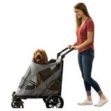 NO-ZIP, push button entry; quickly lock and unlock doors without fumbling with difficult zippers Interior dimensions/ Pet cabin size approximate 26 inch L x 15 inch W x 20 inch H. Height to handle is 40 inch Multi-position handle lets you adjust the handle height to your comfort and Dual-entry, pets can enter stroller from the front or back (no need to lift pet!). 600 Denier Nylon