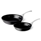 Heavy-gauge aluminum construction ensures even heating and is hard-anodized for durability It also makes it dishwasher-safe Interior includes three layers of nonstick coating - two layers provide durability and the third layer offers easy release performance. Utensils: Nylon, Coated or Wood. Oven Safe: To 450° F Omelette Fry Pan, 10-inch and 12-inch Set, Black