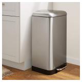 AmazonBasics Rectangle Soft-Close Trash Can with Steel Bar Pedal - 40L, Nickel