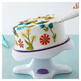 White and purple turntable smoothly rotates in either direction for right or left-handed use and the tilting mechanism provides 18 secure plate positions, with large push button for easy control Material: Plastic 12 in. dia x 7 in. (30.4 cm diam x 17.8 cm) Wipe clean with a soft, damp cloth and dry thoroughly before first and after each use