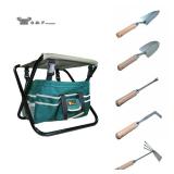 Sturdy Steel frame: all-in-one garden tool set comprised of a top quality tested Folding Steel frame Lightweight and portable: all-in-one garden tool set is not Only sturdy but is also light weight. Designed to serve the purpose of portability and durability for all weather Detachable polyester storage tote: the Stool as shown has detachable canvas storage tote so that can be easily removed and washed in case required Wooden handles tools: all the tools of the product has stainless Steel gardening tools with wood handles allowing you to have a sturdy grip and environment friendly product The tools set has external pockets for easy garden equipment access. This ergonomic design helps you to use the tools pockets with ease