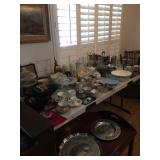 Contents of home includes Ethan Allen furniture: lamp tables, Dresser, King Bed, night stands, Recliner, Windsor Chair, 2 two file cabinets, 5 wood chairs, drop leaf table & 6 chairs, Spindle cradle, 3 piece black leather sofa, Corner computer desk, rolling computer table, Needle point chairs, pair upholstered chairs, Campaign table, Antique 2 seat school desk, twin beds, Floor Lamps Sterling Silver and silverplate, Dog Kennel, stroller & accessories, Phalzgraff Yorktowne pottery, Limoges Haviland China, Crystal, Hummels, Royal Doulton, Records, Books, Flatware, Kitchen cookware & small appliances, Antique Spice Box, Linens, Wall clocks, wood Dutch shoes, Iron toys, Lamps, Storage Boxes, Pictures, framed art, SEWING & CRAFTS; Threads, frames, patterns, books, kits, fabric, yarn, frames, Mag floor light Ladies Clothes, shoes, purses, gloves, hankies, Jewelry, Furs, Men's Ties Hand Tools, Vacuums, metal shelves, Christmas & Halloween decorations, Frames, Dog stroller-Ramps-crate-accessories, House has lots of smalls too many to list. |
