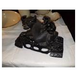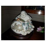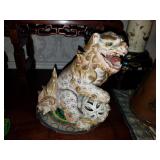 HIGHLIGHTS Signed K.P.M. framed porcelain plaque Large pair of 19th century Cloisonne vases. 19th century Cloisonne Altar set- five pieces including censer Many other fine 19th century Cloisonne pieces 18th century Rose Medallion jardineres. Several Canton porcelain pieces Large blue and white Ming period porcelain charger Chinese porcelain garden seat 19th century Jade/Coral/Rose Quartz tree in Cloisonne stand Other Asian porcelains including Kutani, Satsuma, Celadon etc. Signed Meissen large Figural group A collection of figural antique canes Artwork including oil paintings, watercolors, etchings and prints. Bernard Buffet, Judaic scene of two Rabbis, Primitive landscapes, Framed prints plus much more Carved Japanese floor screen with painted details Set of six Beacon Hill dining chairs Fine inlaid custom sideboard. Custom mahogany dining table. Crystal including Lalique, Waterford, Baccarat etc. Art Glass including Ken & Ingrid Hanson vase, Murano, Orient & Flume Porcelain including Wedgwood, Lenox, Bavarian, Spode Collectibles including Hummels, Royal Doulton Toby Mugs, Beatrix Potter figurines, Steiff Animals etc. Herschede Tall clock, Bigelow & Kennard mantle clock. Waltham Banjo clock. Various Oriental scatter rugs. Crystal chandelier and matching sconces. Asian lamps. Nice Brass Oil Lantern- “Cabin Light” Great Britain Beautiful 19th century French style andirons. Needlepoint fireplace pole screen Pair of Asian reverse glass paintings Other furniture to include Oak Cottage chests, Mahogany bedroom set, Rockers, Leather recliners, French Provincial chairs plus much more to be offered. Basement will include- Books, Records, Vintage Clothes, Vintage toys and games including Atari set and games. Beanie Babies. Magic related items, golf clubs, tool bench, kitchen items, mechanical banks plus who knows what else- stay tuned!!! Like new- Whirlpool white side by side fridge (less than 2 years old).
